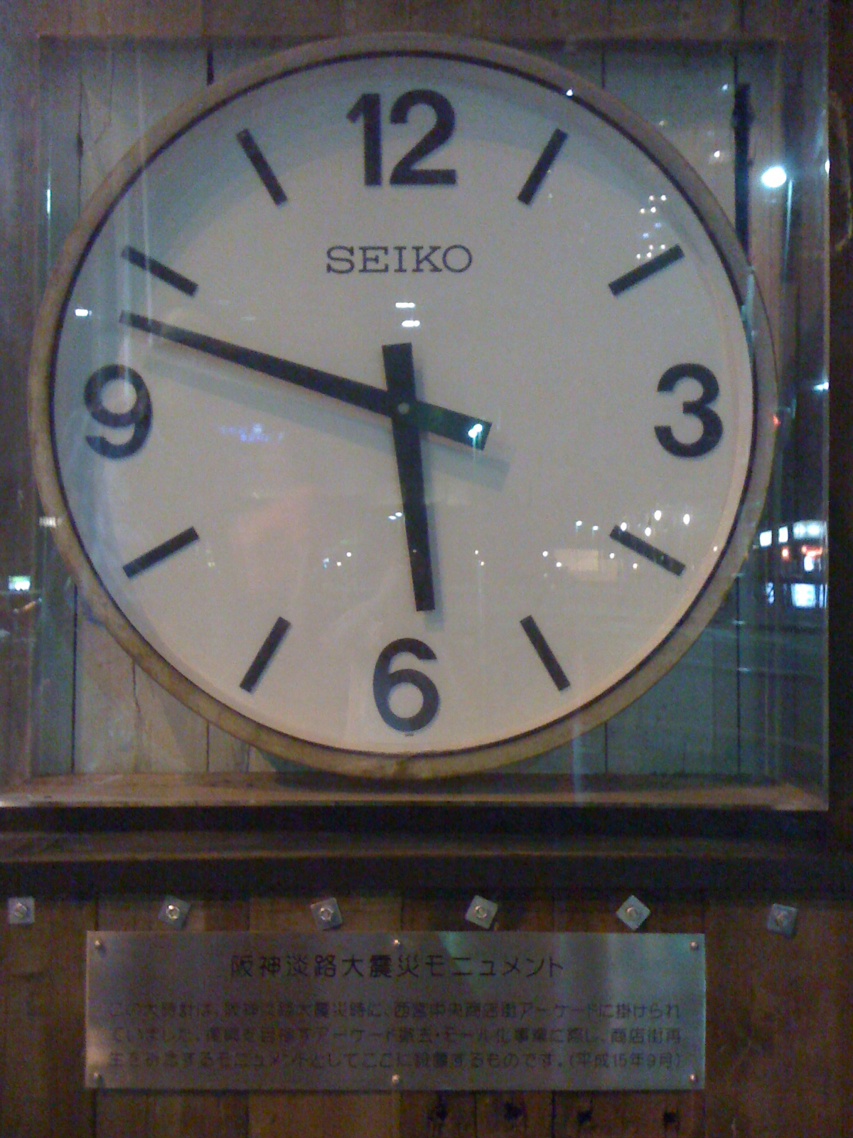 Clock in Sannomiya Stopped at the exact time the 1995 earthquake happened. It is still there today.